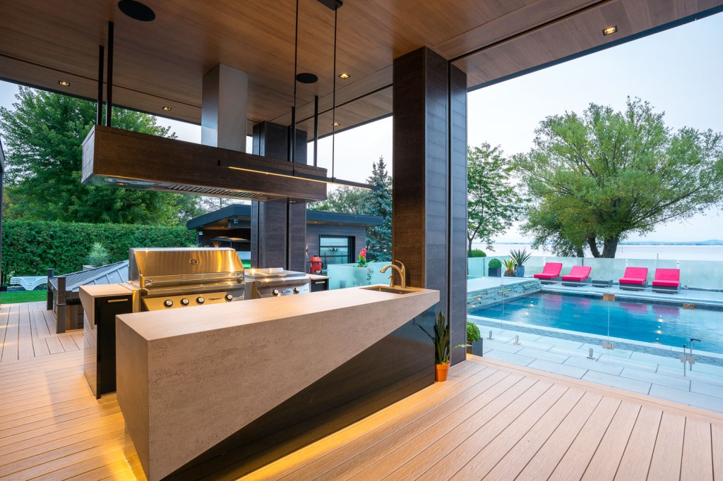 Clé en main du design, de la conception à la construction, en étroite collaboration avec Gestion D & R Poirier. Architecte Brainnustudio. Photos Alain Denis. Composantes en bois par Planchers Bellefeuille.