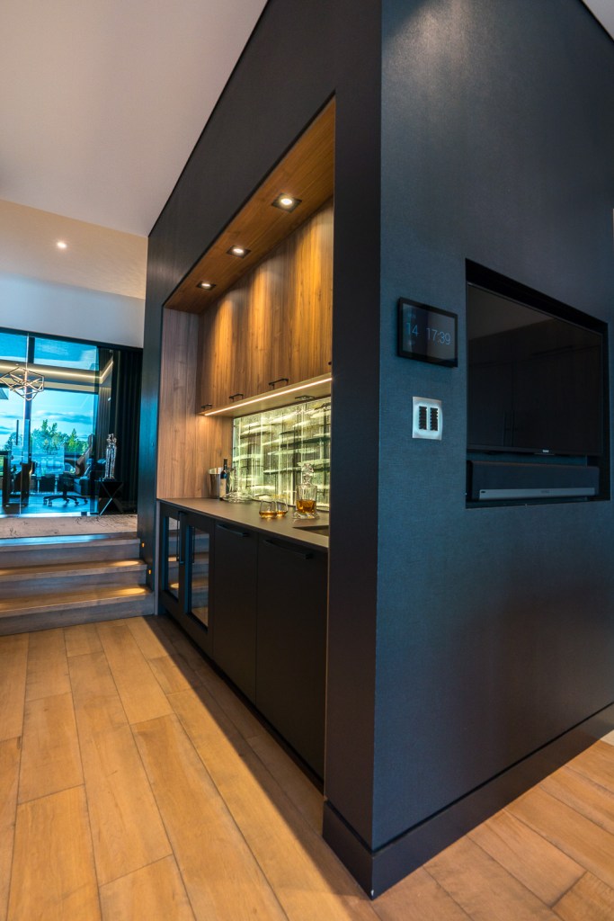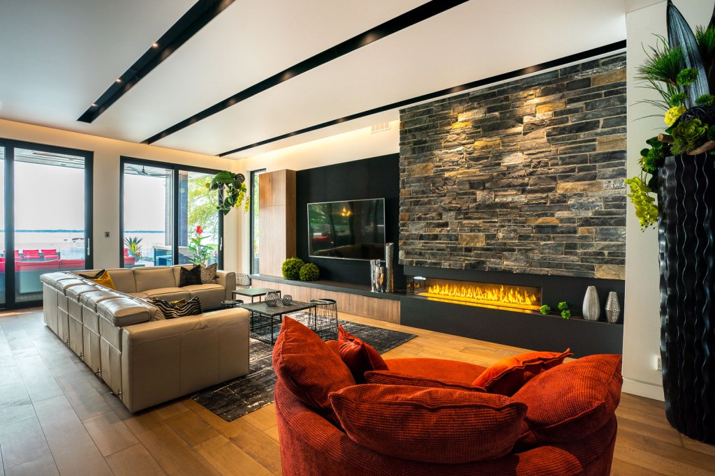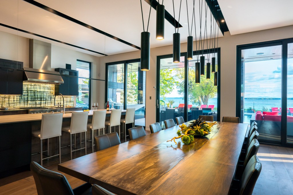 Sur le bord de l’eau, non loin de Montréal, cette vaste demeure a été rénovée en profondeur pour faire place à une œuvre à part entière. Catherine Séguin Design a été mandatée pour le design de ce projet par les propriétaires de la résidence, qui désiraient apporter un design d’intérieur contemporain, tout en dégageant une atmosphère chaleureuse et joyeuse, où il fait bon vivre en famille. Amateurs de sensations fortes, le résultat devait également créer des émotions de surprises et des sensations d’admiration nouvelles et positives. Telle une éclipse, le passé de cette maison est disparu pour laisser place à une nouvelle version d’elle-même. Voilà l’Éclipse, où le dépassement des attentes entre en jeu, dans l’unité et la diversité des textures et des matériaux qui se côtoient, par les couleurs en accentuation qui dégagent de vives émotions et par la lumière qui fuse de plusieurs manières, rythmant de jour comme de nuit. La magie vous exalte, le mystère vous transporte, le passage dans aucune pièce ne vous laissera indifférent.